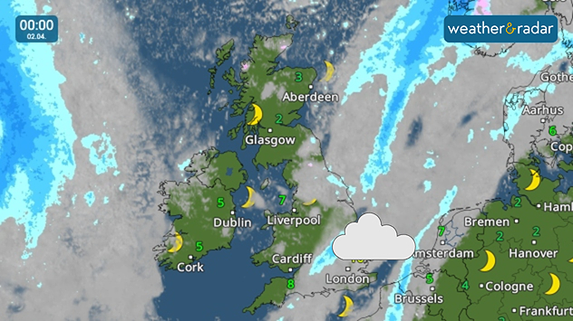 By midnight, much of Scotland and Wales will also enjoy clearer skies to see the full moon rise. Cloud cover masks this in parts of England, and becomes more widespread deeper into the night.