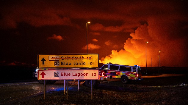 Emergency services on road leading to volcanic eruptionEmergency services remain nearby the scene, no access to the eruption site is currently allowed. - © picture alliance
